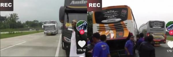 Pada sebuah video yang diunggah oleh akun tikTok @tetap_semangat_007, awalnya ada seorang penumpang tengah menaiki bus PO Haryanto. Namun, saat melewati jalan tol, terdapat deretan bus yang berhenti di bahu jalan. Itu rupanya disebabkan ada salah satu armada bus dari PO Haryanto yang mogok.
