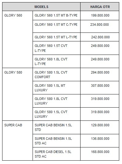 Berikut daftar harga produk DFSK on the road (OTR) Padang