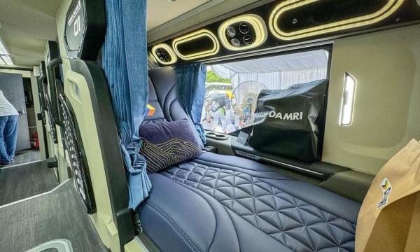 Seluruh kursi pada dek atas sudah dilengkapi dengan jok berukuran jumbo, AVOD, port USB, stop kontak, dan meja makan. Bus ini juga akan dilayani dengan pramugari yang siap memanjakan penumpang sepanjang perjalanan.