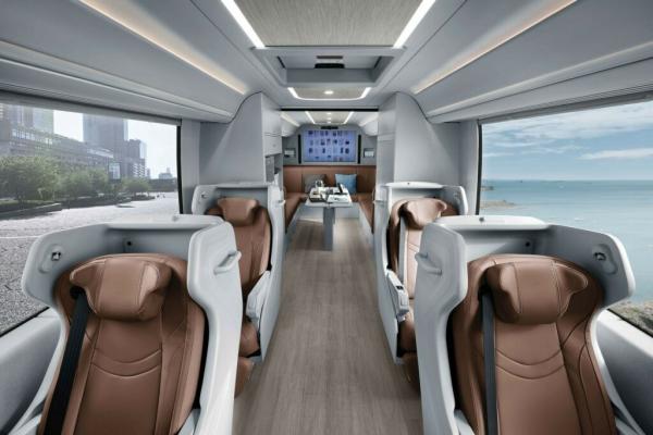 Desain eksklusifnya ini seolah mengingatkan pada kenyamanan kelas bisnis untuk penerbangan internasional saat menggunakan pesawat terbang. Namun ini ditampilkan pada sebuah bus penumpang.