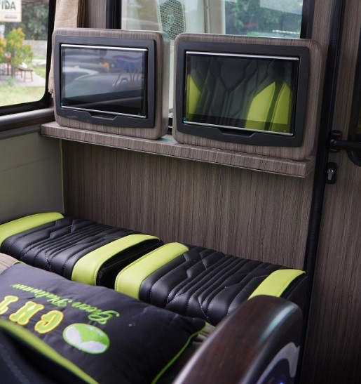 Setiap kursi dilengkapi leg rest dan juga Smart Audio Visual on Demand (AVOD). Selain itu, terdapat USB port dan juga lighter untuk kebutuhan mengisi daya ponsel penumpang. Tak ketinggalan selimut dan bantal untuk menambah kenyamanan penumpang sepanjang perjalanan.
