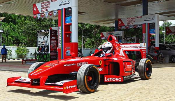 Latif tidak sendiri. Dia bersama timnya memamerkan mobil ini untuk keperluan foto bersama. Menariknya, mereka memposisikan diri layaknya pembalap F1 yang ingin memulai start.