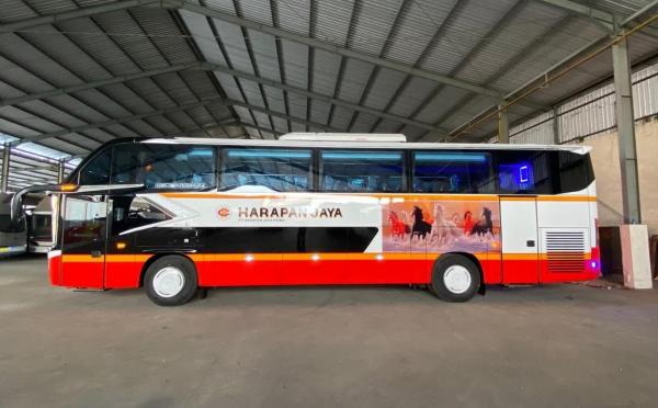 JAKARTA, iNews.id– PO bus Harapan Jaya merilis dua bus baru hasil garapan karoseri Tentrem, asal Malang, Jawa Timur. Armada baru ini menggunakan bodi Avante H8 facelift yang ditopang sasis Hino RM280.