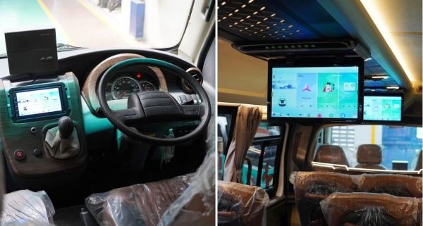 Sesuatu yang menarik pada armada baru PO Suryaputra ini terdapat pada bagian kabin. Nuansanya dibuat elegan dengan lampu berwarna kuning hangat yang dikombinasikan ornamen kayu dan laser cutting.
