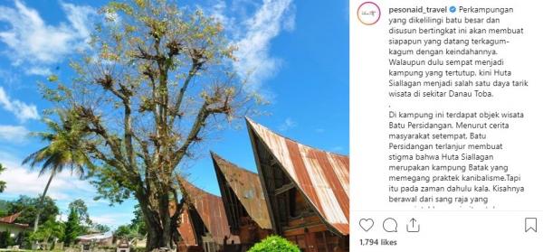 "Penasaran dengan perkampungan batak yang indah nan unik ini? Yuk, liburan ke sini sekaligus menyambangi Danau Toba!" tulis Instagram @Pesonaid_travel, Rabu (12/6/2019).