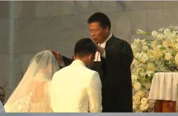 "Di dalam nama Allah Bapa, Tuhan Yesus, dan Roh Kudus, saya menyatakan , Yang dipersatukan oleh Allah tidak boleh diceraikan manusia, Amin. Tuhan memberkati engkau, dan melindungi engkau, Tuhan menyinari engkau dengan wajahnya dan memberi kasih karunia."