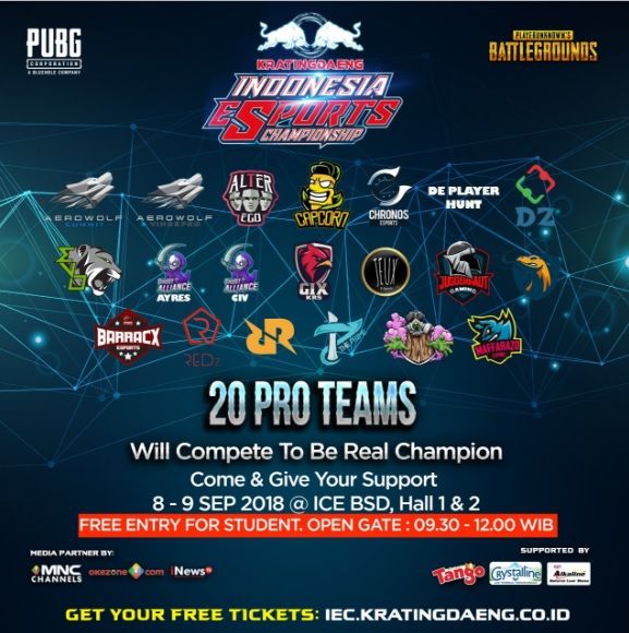 Dengan demikian ada 38 tim Esports yang akan berlaga di Grand Final Kratingdaeng Indonesia Esports Championship 2018 dan memperebutkan total hadiah senilai Rp1 milar. Pihak Kratingdaeng juga akan memberikan 2 hadiah motor sport premium senilai Rp 40 juta untuk Most Valuable Player masing-masing untuk 1 pemain terbaik MLBB dan 1 pemain terbaik PUBG.
