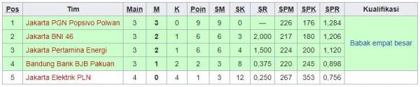 Tiga laga yang dilalui Popsivo Polwan selalu berujung kemenangan. Wajar jika mereka ada di puncak dengan poin 9. Sementara Pertamina Energi masih tercecer di peringkat ketiga dengan nilai 6, hasil dua kemenangan dan sekali kalah.