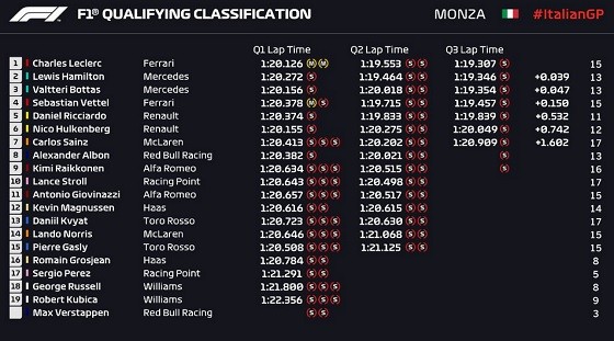 Hasil kualifikasi GP Italia 2019 selengkapnya: