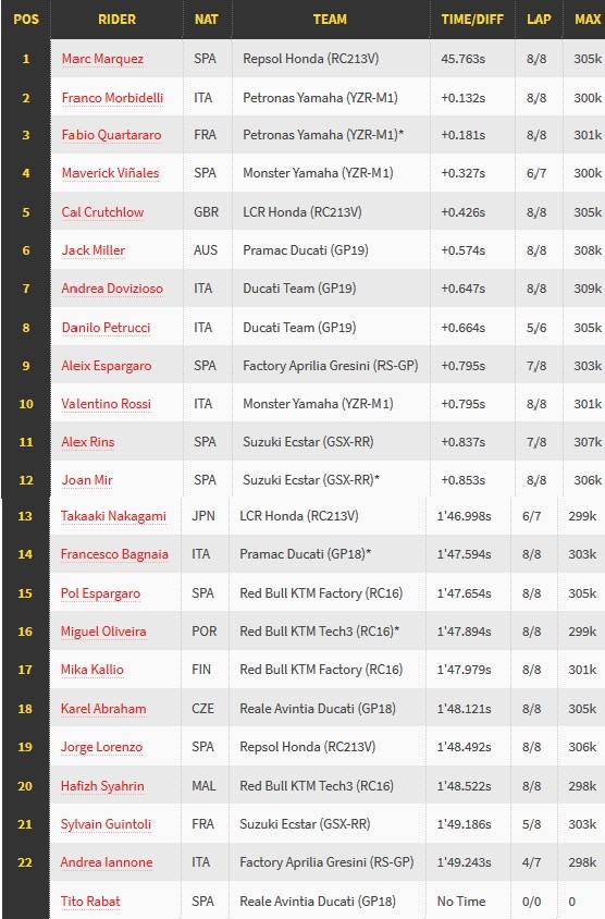 Bagi Marquez, ini jadi pole position ke-10 sepanjang 2019. Catatan tersebut kian menegaskan dirinya sebagai pembalap terbaik di musim ini.