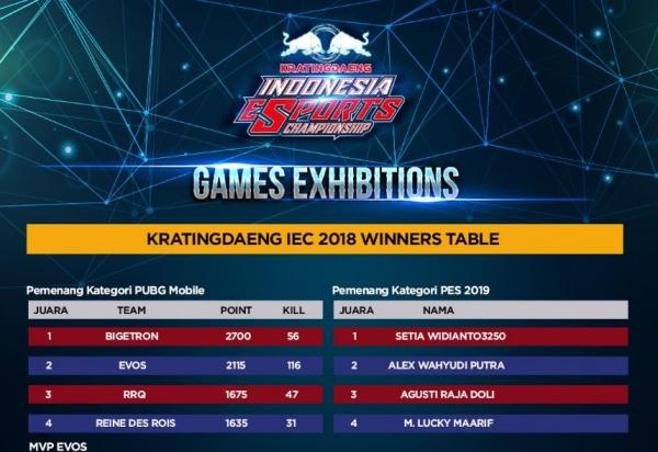 Kratingdaeng juga memberikan predikat Most Valuable Player kategori MLBB kepada Liam dari RRQ.O2 yang berhasil membukukan skor MVP 9,55. Predikat Most Valuable Player PUBG jatuh ke tangan Setiawan Tandy (Jeixy) dari The Prime yang berhasil membukukan 27 kills. Kedua player tersebut berhasil mendapatkan 1 unit Motor Sport Custom senilai Rp40 juta persembahan Kratingdaeng.