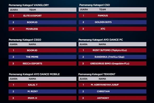 Di kategori permainan Mobile Legends Bang Bang, tim Louvre tampil sebagai juara setelah berhasil menyingkirkan tim-tim besar seperti EVOS, RRQ, dan Aerowolf. Di babak final, mereka berhasil mengalahkan Aerowolf dengan skor 2-1 dan berhak atas hadiah uang tunai sebesar Rp160 juta.