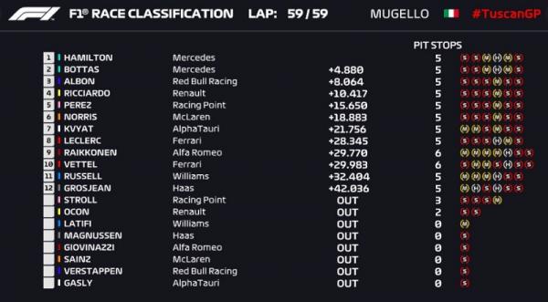 Sementara itu, ajang yang merayakan balapan ke-1.000 Scuderia Ferrari, justru tak berlangsung sesuai harapan. Meski sempat berada di posisi ketiga, Charles Leclerc akhirnya harus memberikan posisinya kepada pembalap Racing Point, Lance Stroll.