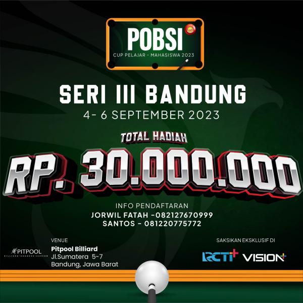 BANDUNG, iNews.id - Pencinta olahraga biliar di sekitar Bandung dapat bersiap-siap menyambut POBSI Cup Pelajar-Mahasiswa Seri III. Kali ini, turnamen tersebut akan bergulir pada tanggal 4 hingga 6 September 2023.