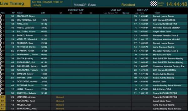 Berikut hasil balapan GP Jepang di Sirkuit Motegi