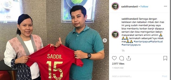 “Semoga dengan keiklasan dan kebaikan mbak dan mas ini yang sudah membeli jersey saya bisa membantu korban banjir di Papua, Sentani dan bisa meringankan beban masyarakat Sentani. Amin, Amin, terima kasih sebanyak-banyaknya mbak mas. #sentanipapua #kaliankuat #sentanijayapura,” tulisnya di media sosial tersebut.