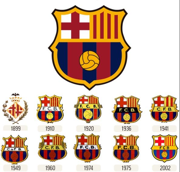 Berikut perubahan logo Barcelona dari tahun ke tahun.