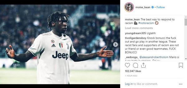 Melalui akun Instagram miliknya, Kean menuturkan maksud perayaan golnya itu. “Itu respons terbaik melawan rasisme,” tulisnya.