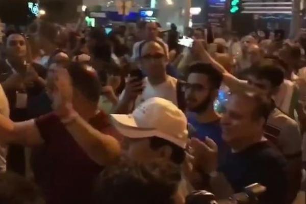 Para suporter Iran berkumpul di depan hotel timnas Portugal di Rusia.