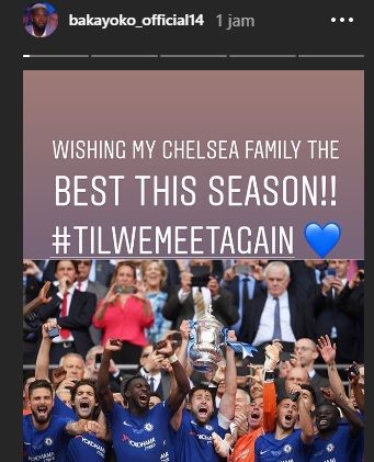 “Semoga rekan setim saya di Chelsea mendapatkan prestasi terbaik musim ini! #Sampaiberjumpalagi,” tulis Bakayoko di Instagram Story-nya disertai foto dirinya mengangkat trofi Piala FA bersama Chelsea musim lalu.