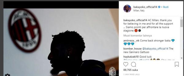 “Terima kasih Milan atas semua dukungan yang diberikan kepada saya,” bunyi caption Bakayoko sambil mengunggah foto siluet wajahnya.