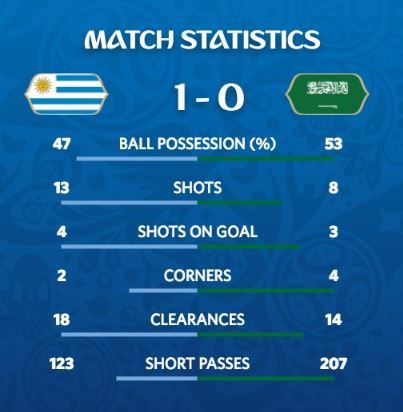 Memasuki babak kedua, Uruguay hampir menggandakan keunggulan pada menit ke-64. Mendapat ruang, Suarez melepaskan tendangan dari luar kotak penalti. Belum beruntung, sepakan bomber Barcelona itu masih bisa diblok para pemain bertahan Arab. Hingga laga usai, Les Celeste tetap tak mampu mencetak tambahan gol.