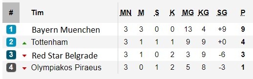 Berikut hasil pertandingan matchday ketiga Liga Champions berikut klasemennya:
