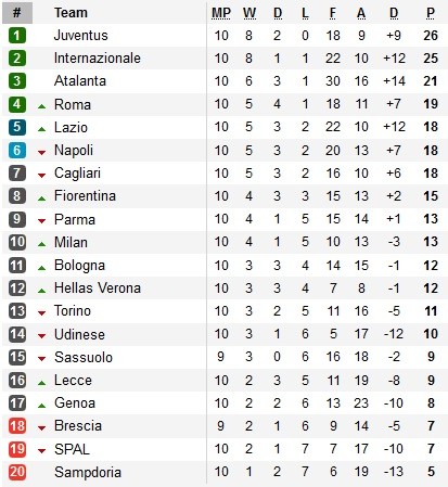 Kompetisi tertinggi Italia itu akan kembali dipertandingkan Sabtu (2/11/2019) malam. Laga ketat akan terjadi hari itu ketika Roma menghadapi Napoli, Sedangkan pada Minggu (3/11/2019) dini hari WIB Inter Milan bakal menghadapi Bologna dan Juventus melawan Torino,.