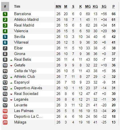 Buat Las Palmas, tambahan satu poin belum mengangkat mereka dari zona degradasi. Mereka masih terdampar di peringkat 18. Selain Las Palmas, di area merah ini juga masih ada Deportivo La Coruna, dan Malaga.