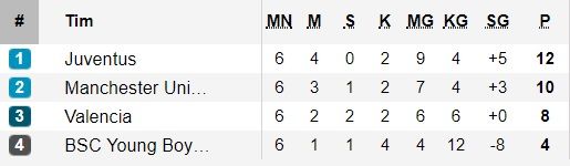 Juventus dan Manchester United, sama-sama mengalami kekalahan dengan skor 1-2. Juve ditaklukkan klub Swiss BSC Young Boys. Sementara itu, MU kalah dari wakil Spanyol Valencia.