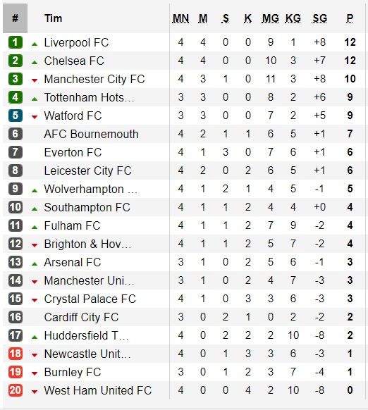 Hasil Liga Inggris sampai Minggu (2/9/2018) Dini Hari WIB