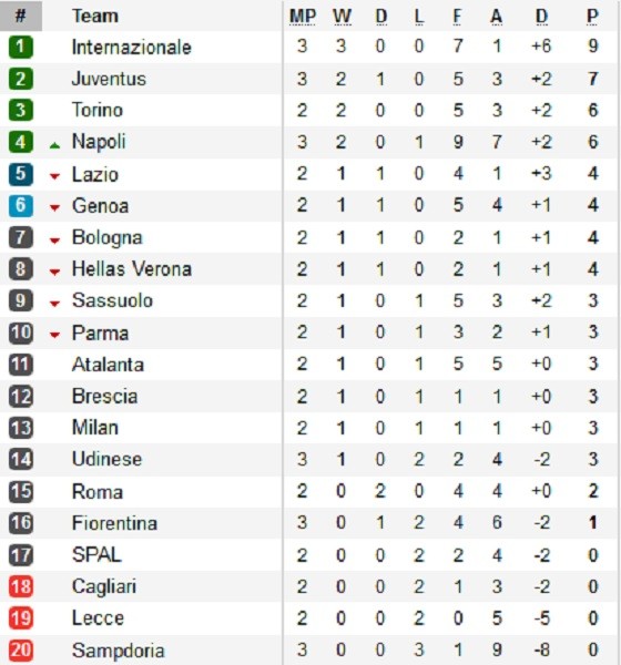 Hasil Liga Italia hingga Minggu (15/9/2019) Dini Hari WIB