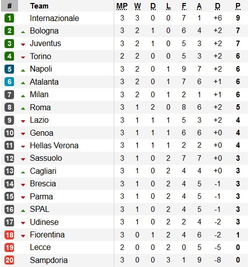 Hasil Liga Italia Serie A sampai Senin (16/9/2019) Dini Hari WIB