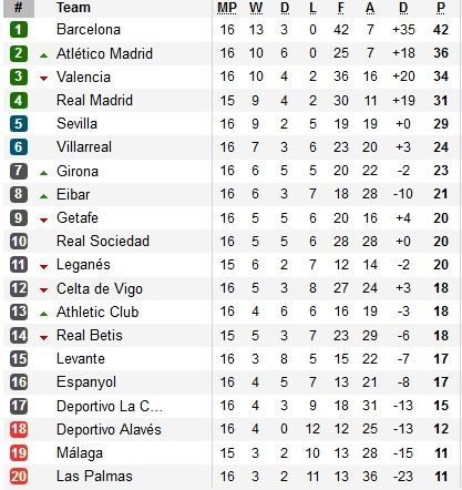Madrid sendiri sendiri sukses menjadi runner-up setelah mengalahkan Deportivo Alaves 1-0, Sabtu (16/12/2017) atau Minggu (17/12/2017). Sedangkan Valencia turun ke peringkat ketiga, setelah secara mengejutkan ditaklukan Eibar 2-1.