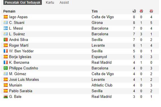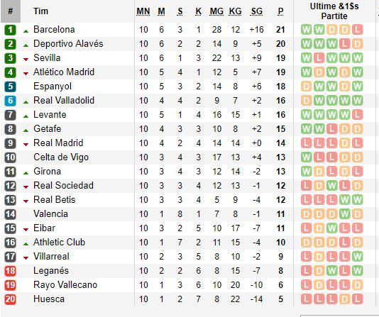 Berikut hasil lengkap pekan ke-10 La Liga beserta klasemen sementara