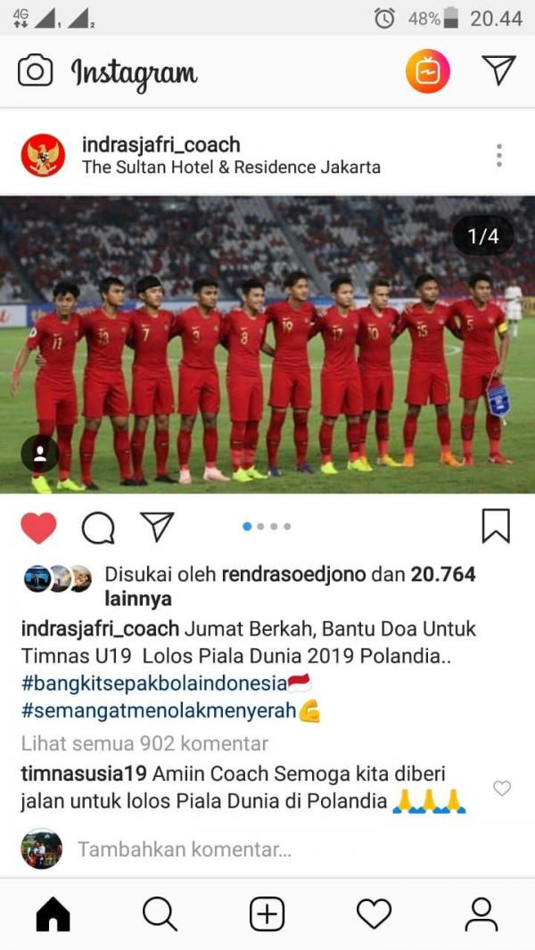 Oleh karena itu, Pelatih timnas U-19 Indra Sjafri, lewat akun resmi Instagram miliknya mengharapkan doa dari seluruh masyarakat Indonesia untuk timnas U-19, Jumat (26/10/2018). Menurutnya, Jumat merupakan hari yang penuh karunia.