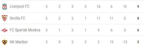 * Liverpool, Sevilla, dan Spartak minimal melaju ke Liga Europa.