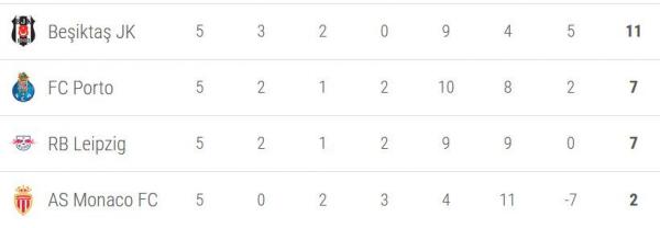* Besiktas dipastikan jadi juara grup, dan lolos ke 16 besar.