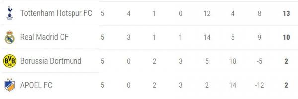 * Tottenham dipastikan jadi juara grup, dan lolos ke 16 besar.