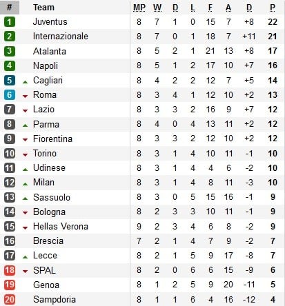 Jadwal dan Klasemen Liga Italia, Sabtu (26/10/2019) Hari Ini