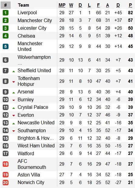 Jadwal, Hasil dan Klasemen Liga Inggris, Minggu (8/3/2020) Malam WIB
