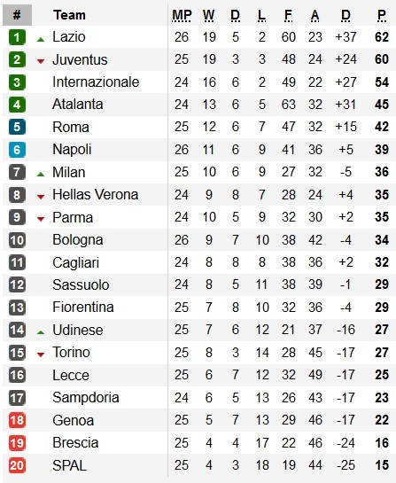 Jadwal, Hasil dan Klasemen Liga Italia, Minggu (1/3/2020) Hari Ini