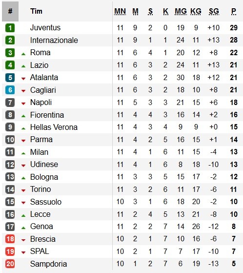 Berikut hasil, jadwal, dan klasemen Serie A pada giornata ke-11 selengkapnya: