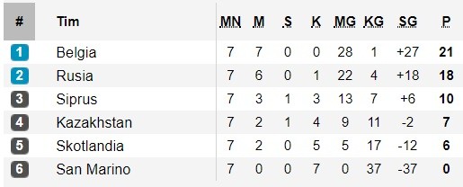 Nilai Belgia tak bisa dikejar Siprus, tim peringkat ketiga yang saat ini mengoleksi 10 angka. Sebab dalam tiga laga sisa, hanya ada sembilan poin yang dapat diperebutkan.