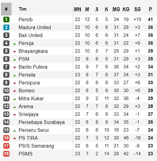 Saat ini, Persib Bandung masih memuncaki klasemen sementara dengan poin 41. Mereka unggul lima angka dari tiga tim yakni Madura United, Bali United, dan Persija Jakarta yang menguntit di peringkat 2, 3, dan 4.
