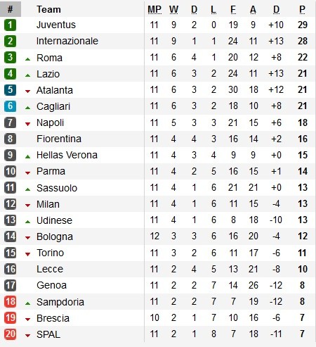 Jadwal Pertandingan Liga Italia Pekan ke-12, 9-11 November 2019