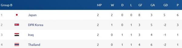 Thailand hanya mampu membalas melalui Suphanat Mueanta di menit ke-54. Hasil itu membawa Jepang berada di posisi puncak dengan nilai 6 dan tak mampu lagi dikejar oleh dua tim terbawah, Irak dan Thailand yang sama-sama baru meraih poin 1. Sedangkan, sisa laga yang dimainkan juga tinggal satu.