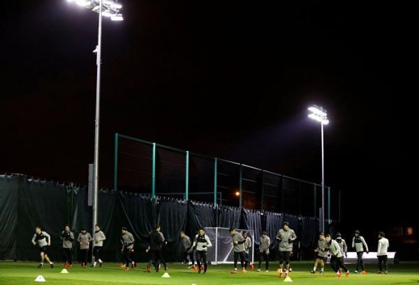 Para pemain Liverpool menjalani latihan di lapangan latihan di Melwood Park, Selasa (5/12/2017).