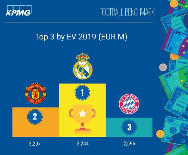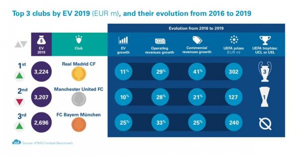 Dalam laporan bertajuk The European Elite 2019, berdasarkan hitungan nilai perusahaan dari 32 klub top Eropa, KPMG mencatat Madrid sebagai yang terkaya mengudeta MU yang memimpin dalam dua tahun terakhir.