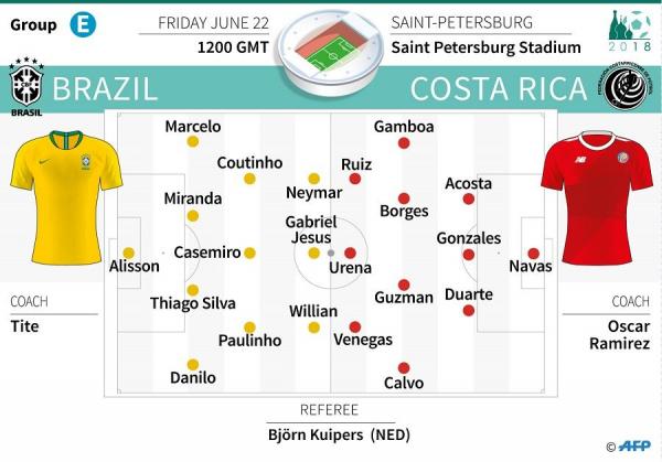 Ini merupakan pertemuan ketiga antara Brasil dan Kosta Rika di Piala Dunia. Dari dua laga sebelumnya, Tim Samba sukses memetik kemenangan. Brasil menang 5-2 pada edisi 2002 dan menang 1-0 di periode 1990.